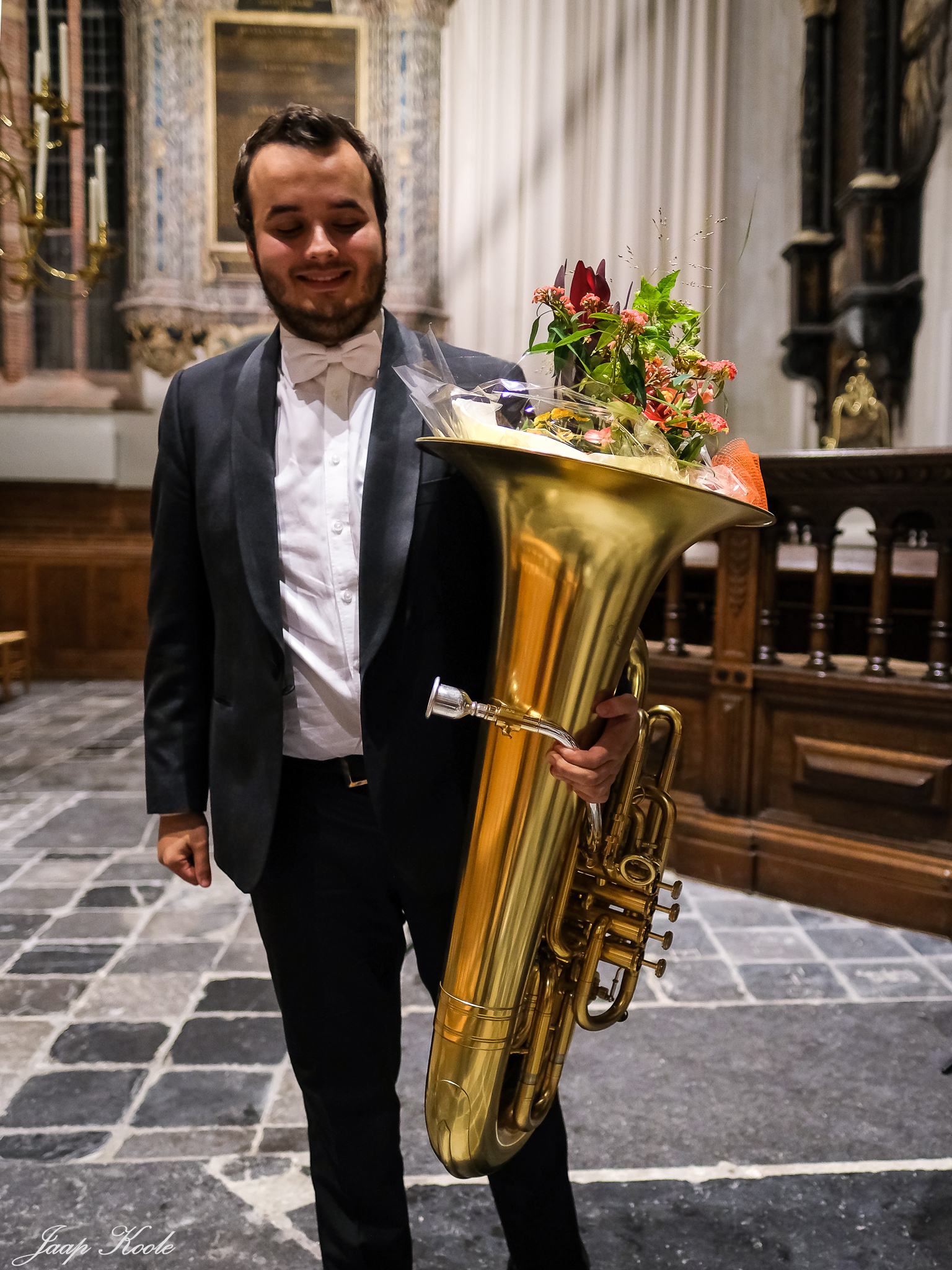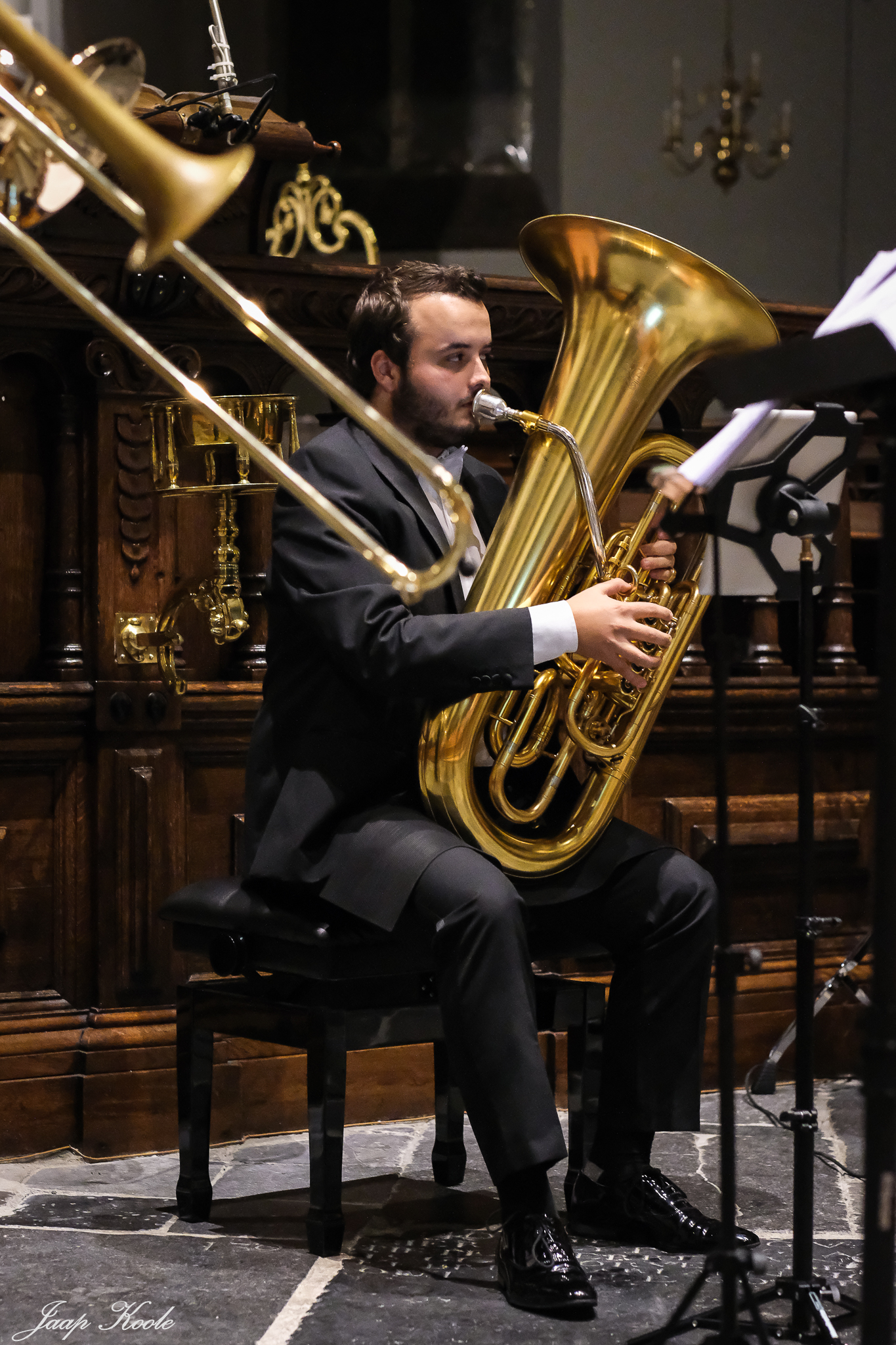 Orgel en kwintet zetten het concert feestelijk in met het Entrate Festiva van Flor Peeters. Vervolgens speelde het kwintet het De Profundis van Sweelinck als solostuk. Trompettist Sander Beens speelde daarna vanaf het orgelbalkon de solopartij in het Trumpet Voluntary van Stanley onder orgelbegeleiding. Jaap Kroonenburg liet solistisch van zich horen met het indrukwekkende Largo van Kryzjanowski. Het orgelstuk “Komt als kind’ren van het licht”, van de vroegere Maassluise organist Feike Asma, werd ditmaal aangevuld door het kwintet dat de solostem voor haar rekening nam. Ontroerend mooi waren het Panis Angelicus en het Ave Maria, waar respectievelijk Sander Beens & Hugo Pieters (trompet/hoorn) en Niels Jacobs (trombone) vanaf het orgelbalkon een solo gaven, begeleid door Jaap Kroonenburg. De Suite Gothique van Boëllmann, een bekend orgelwerk, werd magistraal uitgevoerd door kwintet en orgel. Kwintet en orgel smolten hier samen tot één groot orkest. Er werd afgesloten met het stuk Highland Cathedral, waar een speciale rol was weggelegd voor slagwerker Jarick Bruinsma. Toen dit stuk zijn hoogtepunt bereikte, gingen letterlijk en figuurlijk alle registers open. Het publiek, zeer onder de indruk, beloonde de musici met een minutenlange staande ovatie.