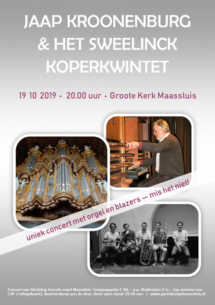 Tijdens dit bijzondere orkest bespeelt Jaap Kroonenburg het Garrels-orgel in samenspel met de koperblazers van het Sweelinck Koper-Kwintet. Dit ensemble bestaat uit koperblazers van maar liefst vijf conservatoria en richt zich op de uitvoering van orgelrepertoire.