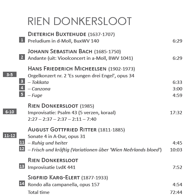 Op dit concert presenteert Rien Donkersloot eveneens zijn nieuwe cd, opgenomen in de Groote Kerk van Maassluis.